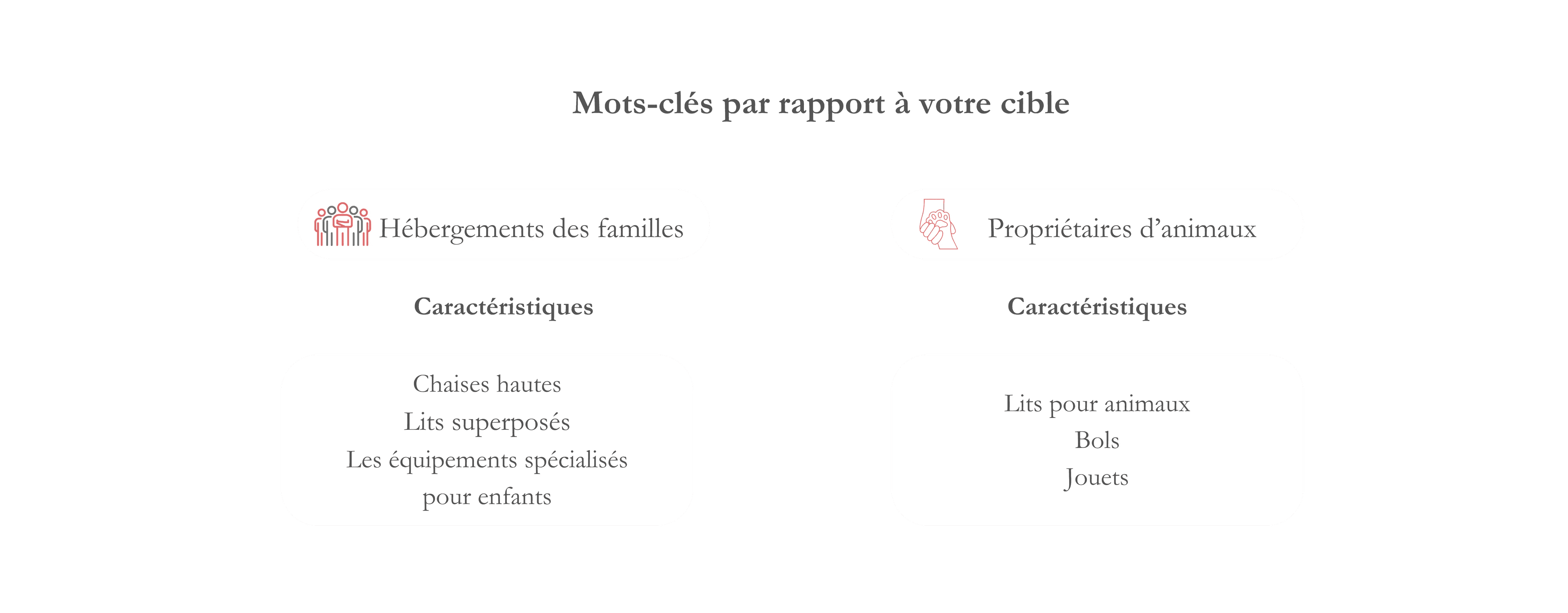 Pour les hébergements adaptés aux familles, mettez en avant des caractéristiques telles que les chaises hautes, lits superposés, et les équipements sécurisés pour enfants. Si vous ciblez les propriétaires d'animaux, mettez en lumière des offres comme des lits pour animaux, bols, et jouets. De plus, assurez-vous que votre annonce est correctement catégorisée sous des filtres comme "plage", "randonnée", "piscine", ou "bain à remous/jacuzzi" pour une découverte facile par les clients potentiels.