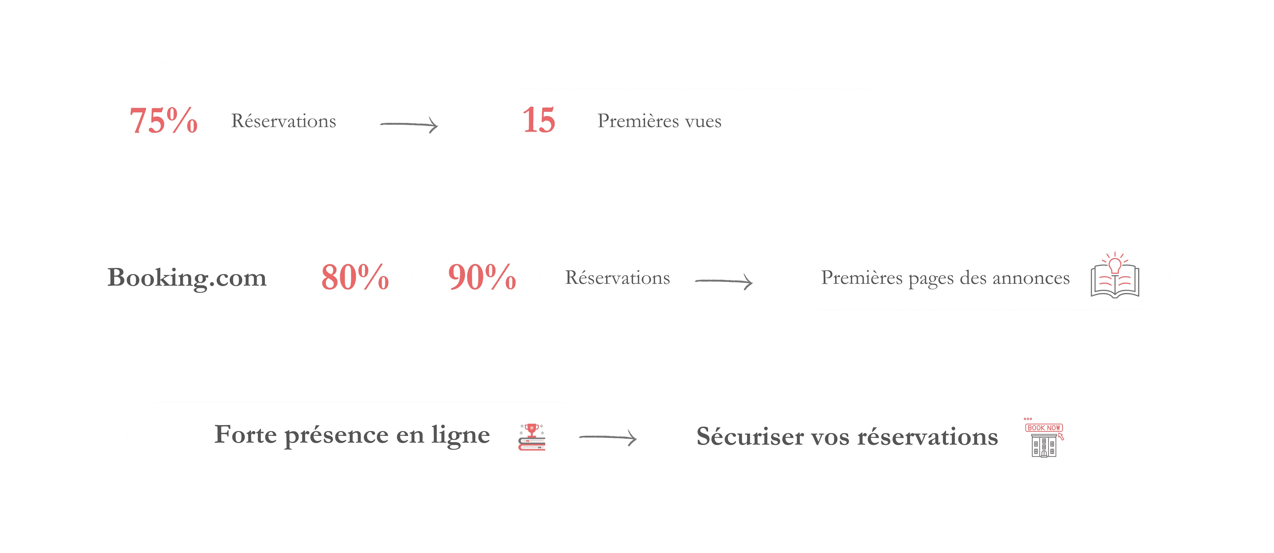 Des études, telles que l'enquête Expedia de 2023, indiquent que 75 % des réservations sont effectuées dans les 15 premières vues sur une OTA, Booking.com estimant que 80 % à 90 % des réservations proviennent de la première page des annonces. Cela souligne une vérité fondamentale dans l'industrie de l'hôtellerie : pour réussir, vous devez être vu. L'absence d'une présence en ligne forte ou un mauvais classement peut entraîner une perte de revenus significative due à la diminution des réservations.